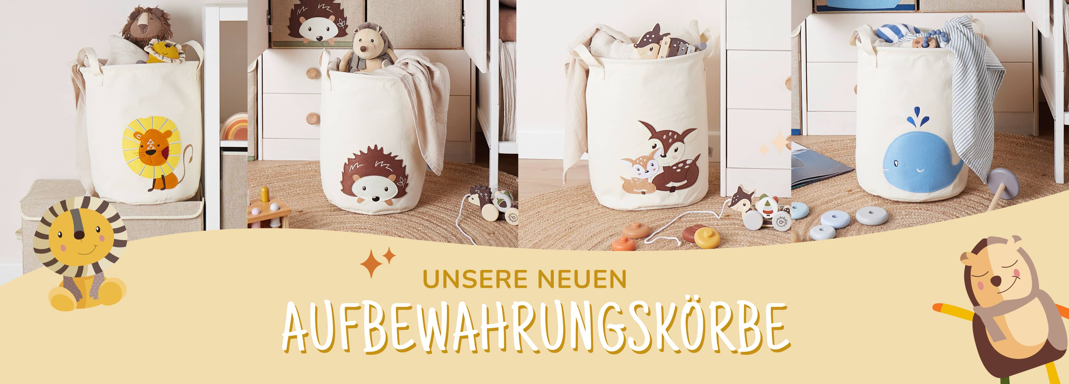 Unsere Kinderzimmer Aufbewahrungsboxen sind mit verschiedenen Designs erhältlich und passen in jedes Kinderzimmer. Ob mit einem Reh oder einem Igel, für jedes Kind gibt es den passenden Aufbewahrungskorb.