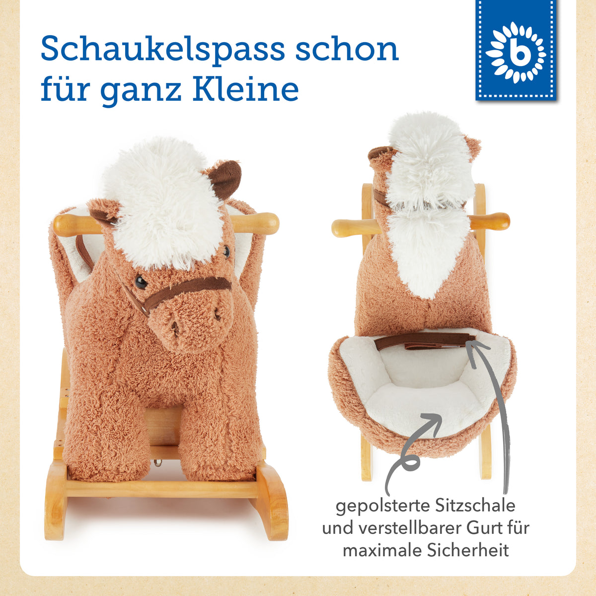 | Faites briller les yeux de votre bébé. Cette adorable bascule pour enfant en forme de petit cheval fera rayonner aussi bien les garçons que les filles.