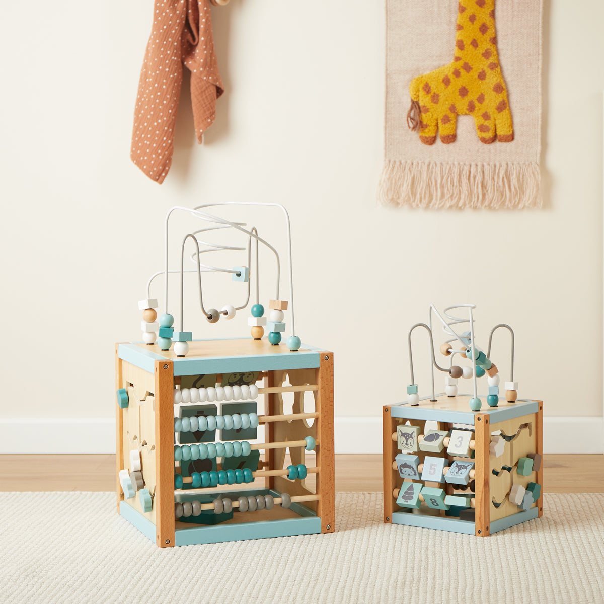 Ein Motorikwürfel ist der König unter den Lernspielzeugen, denn er vereint mehrere Lernspiele in einem Spielzeug. Bei unserem beliebten Motorikwürfel in 2 verschiedenen Größen, sorgen gleich 5 Aktivitäten für Spaß und Abwechslung: