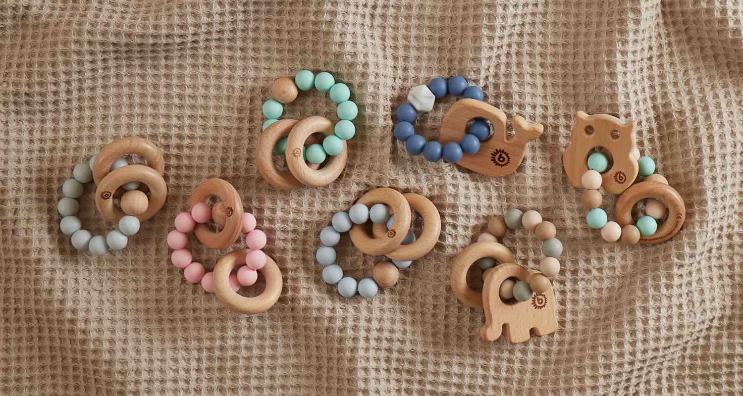 Die ersten Zähnchen machen sich auf den Weg? Wenn schmerzendes Zahnfleisch Linderung braucht, ist ein Beißring der beste Freund deines Babys. Beißringe aus glattem Naturholz oder aus Silikon sind beides eine gute Wahl, je nachdem wie viel Druckausgleich dein Baby benötigt. Verschiedene Oberflächen animieren dein Kleines außerdem zum Greifen, Fühlen und Tasten. Als Zahnungshilfe stärken sie den Gaumen Deines Babys, massieren das Zahnfleisch sanft und helfen so den Zahnungsschmerz zu lindern.