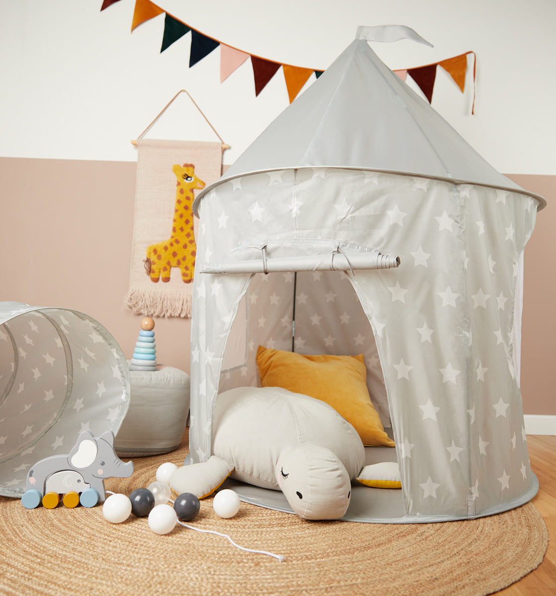 Dein Kleines wird sein eigenes Bällebad zu Hause lieben! Perfekt für die Entwicklung aller Sinne und Spielstunden voll Kinderlachen und Spaß! Und sind wir ehrlich? Ein Bällebad ist einfach so ein wunderschönes Centerpiece im Kinderzimmer. Spielzelte können außerdem auch als toller Rückzugsort zum Kuscheln und lesen in eine Kuschelecke integriert werden.