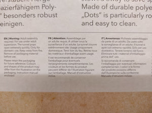 - Achtung, der Aufbau ist durch einen Erwachsenen vorzunehmen. Der Tunnel springt extrem schnell auf.