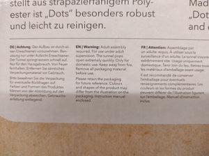 - Paketinhalt: 1 Spieltunnel, 1 Aufbauanleitung