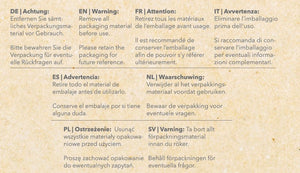 - Warnhinweise: Achtung, Benutzung nur unter Aufsicht von Erwachsenen.